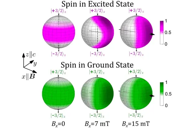 A research team led by PDI has shown that weak magnetic fields applied perpendicular to the symmetry axis of the VSi center lead to the inversion of the ODMR contrast for certain spin transitions in both the ground and excited states. The experimental results are well reproduced by a theoretical model introduced in the manuscript, which explains the unusual behavior of the ODMR signal as a consequence of the reorientation of the spin polarization under the transverse magnetic field. More…