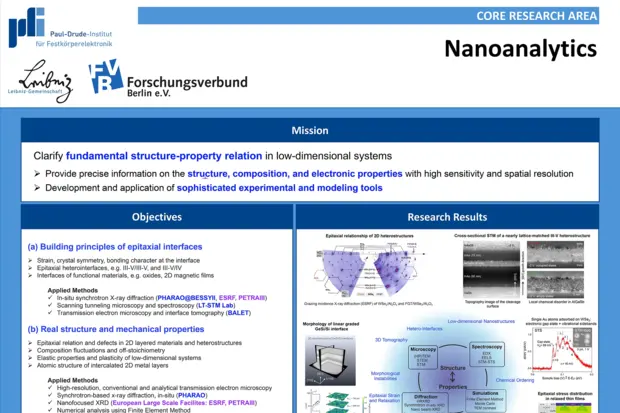 As opto-electronic technology continues to shrink device sizes, precise information on the structure and composition of low-dimensional systems and nanoscale devices becomes essential. The physical properties of the materials are often determined by atomic-scale features, making advanced characterization techniques crucial. This Core Research Area focuses on understanding the fundamental structure-property relation of nanomaterials through high-sensitivity, high-resolution experimental and modeling tools.